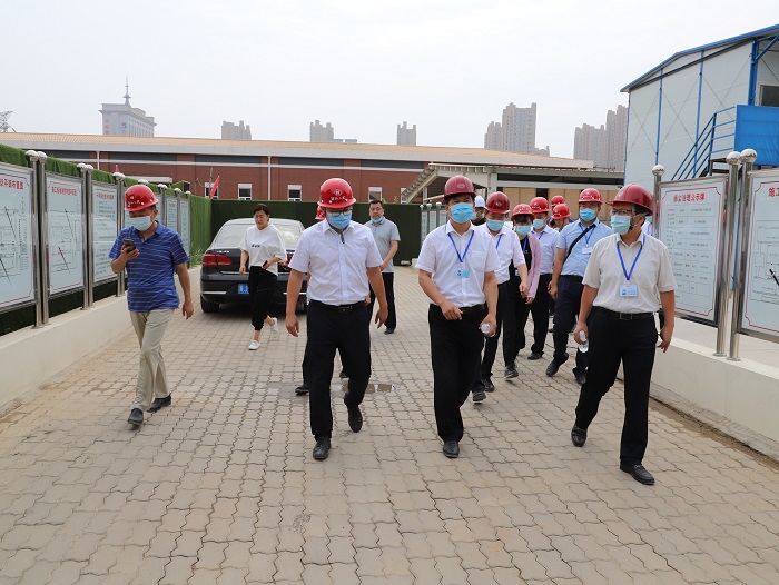 最后,学校领导与施工项目部人员进行了座谈。座谈会上,河北省第二建筑工程有限公司生产经理周福强对学校领导此次的关心慰问表示了感谢,并表示将学校关怀传达给每位工人,鼓舞工人干劲,保质保量按期完成以后的施工任务。项目经理王朝松针对工程建设进展情况和质量、工期情况作了汇报,学校后勤管理处刘国民处长针对工程部署情况向校领导作了汇报。陈进杰书记和向辉校长听取以上汇报内容后,对施工项目部克服新冠肺炎疫情带来的各种困难保障了工程进度表示满意和感谢,也对下一步的施工提出了几点要求,一是目前疫情状况仍不容乐观,接下来的内装修工程阶段,施工企业在紧抓质量工期的同时,做好对工人各方面的保障和关怀,学校将与施工企业协力合作,保证工程进度不受影响。二是施工企业要按学校投入使用的时间要求,实现合法合规入住的各项前提条件,确保新学期学生如期入住。针对以后各项施工工作,多节点并进,合理优化调整各项施工,确保施工质量和安全,如期完成工程任务。三是学校后勤管理处要全力以赴配合施工单位推进工程项目,力争8月底建筑单体验收完成。 最后,于振海副校长强调,后勤处和施工项目部要按照陈书记和向校长的要求,共同研究今后建设施工验收等方面的工作部署,严格按照书记、校长的要求开展工作,保证7号学生公寓如期投入使用。