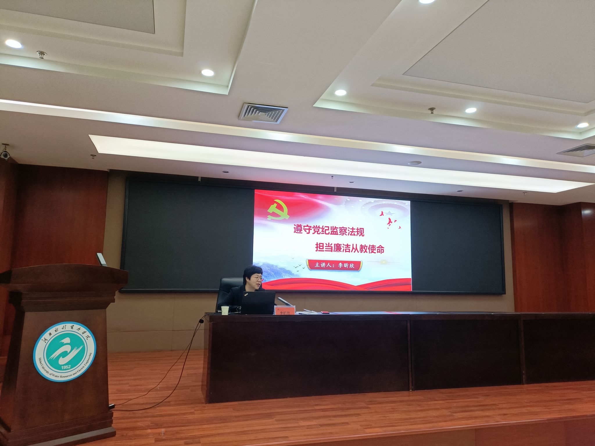 李昕欣副书记以案说纪、以案释法,对典型案例进行了深刻剖析。讲座寓意深刻、发人深省,既深刻地分析了当前反腐倡廉的形势及走向,又指出了青年教师应该警醒和注意的问题,达到“心有所畏,行有所止”的目的,为新入职教师进一步强化廉洁从教意识,增强抵御腐败的自觉性起到了重要作用。
