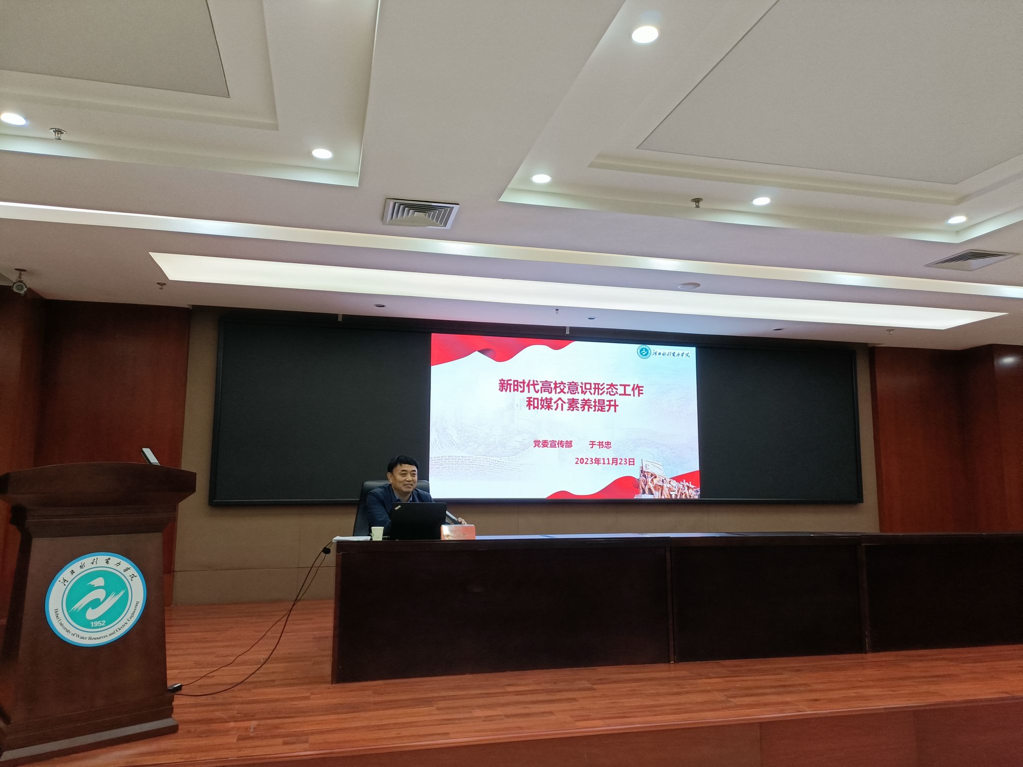 为培养新入职教师依法执教、廉洁从教意识,提升媒介素养,进一步加强职业道德教育,我校于11月23日下午在弘文•守正楼9楼报告厅举办了2023年新入职教师培训专题讲座。讲座分为“依法执教与高校教师职业风险防范”、“新时代高校意识形态工作和媒介素养提升”、“遵守党纪监察法规,担当廉洁从教使命”三个专题,分别邀请了沧州师范学院政史学院副院长霍凤娥、我校党委宣传部部长于书忠和纪委副书记李昕欣担任主讲。
