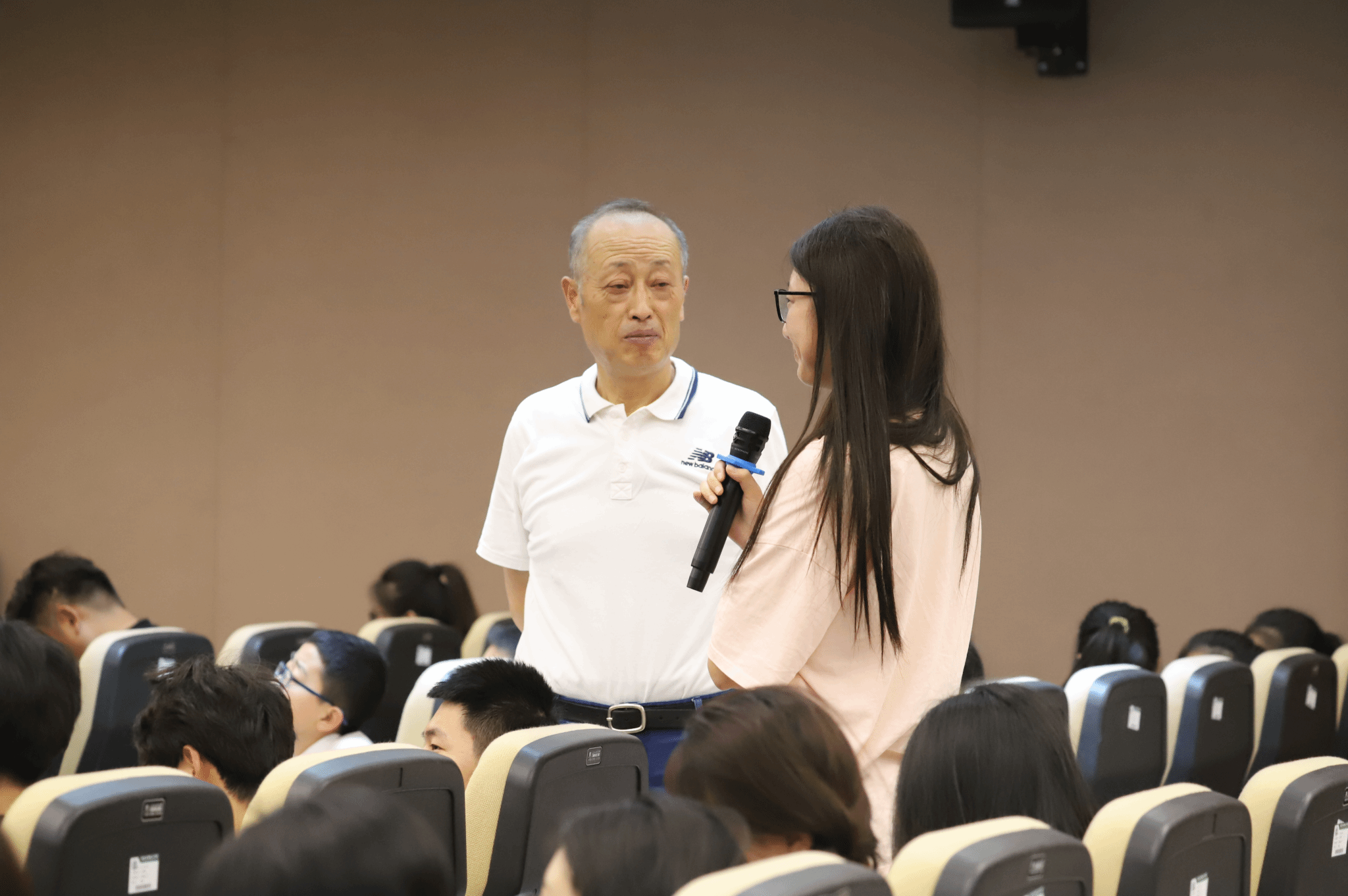 讲座结束后,上海路小学学生代表孙雨洁和我校学生代表舒雪倩上台为国连杰教授献花,表达了对他的敬意和感谢。