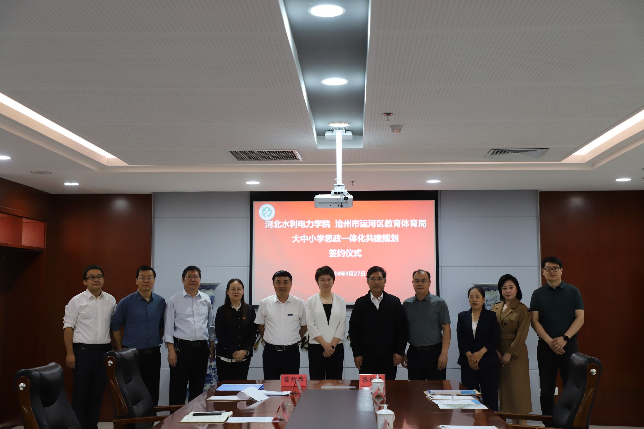 为进一步贯彻落实习近平总书记在全国教育大会上的重要讲话精神,全力推动大中小学思政一体化建设结出硕果,9月27日,我校与沧州市运河区教育体育局举行签约仪式,共同推进大中小学思政课一体化建设。沧州市运河区政府副区长刘晖、我校党委书记张效松出席会议。会议由我校马克思主义学院院长贾启红主持。