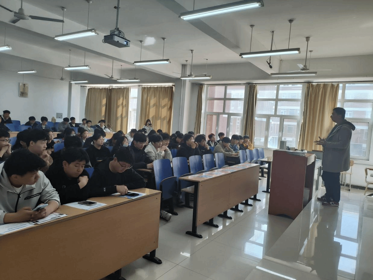 随后,臧晨阳经理介绍了公司的企业规模、发展历程及个人在公司的发展心得,杨汉腾经理上台分享他的创业经历、行业见解以及对当前大学生就业择业的意见。杨汉腾经理通过生动的案例和深入浅出的讲解,让同学们对职业发展有了更清晰的认识,同时,他们还就如何培养创新精神、提升实践能力等方面给出了宝贵的建议。